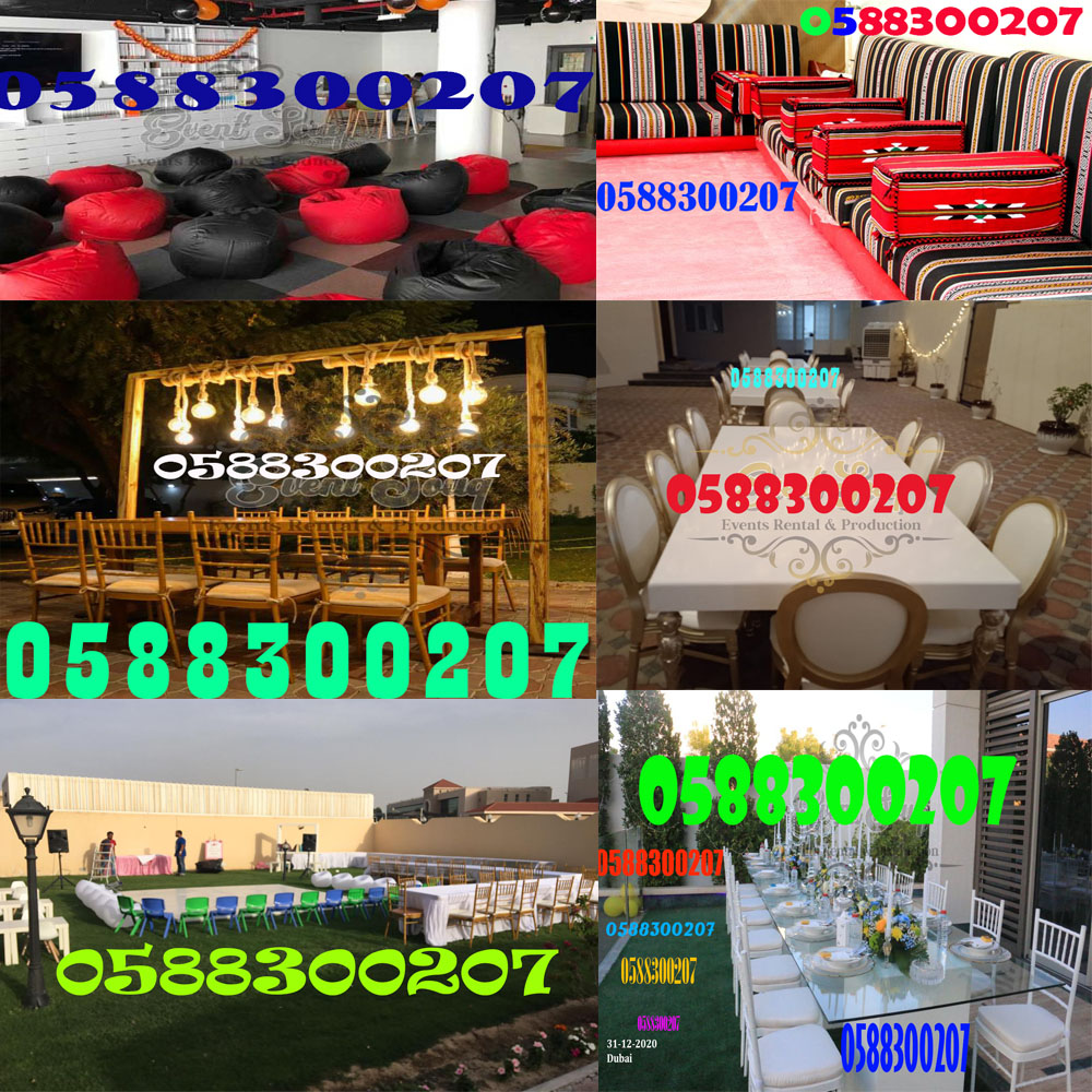 دائمًا وفي جميع الأحداث نحن متواجدون في الأحزان قبل الاستمتاع وفي جميع الأوقات والأحداث وأيضًا دائمًا بأفضل الأسعار. خدماتنا متاحة دائمًا، لذا اتصلوا بنا على الرقم: 0588300207 وسنقوم بتجهيز جميع الأحداث الحزينة إن شاء الله والأحداث الممتعة إن شاء الله من خلال تأجير أرقى الكراسي وأكبر مجموعة من كراسي الفاخرة للتعازي، وطاولات التعازي، وكراسي الزفاف، وطاولات الزفاف، وكراسي Dior الذهبية، وكراسي Dior البيضاء، وكراسي Dior الشفافة، وكراسي Dior بمسند ذراع، وكراسي بغطاء من القماش، وكراسي Chivari البيضاء، وكراسي Chivari الذهبية، وكراسي Cross Back، وكراسي Banquet اللون الأحمر بإطار ذهبي، وكراسي بمسند للذراع، وكراسي مؤتمر Valeria VIP بمسند ذراع من جلد أبيض، وكراسي Valeria Accent بمسند ذراع من جلد أبيض، وكراسي تناول الطعام Easton من الصلب الأسود، والجلوس التقليدي، والوسائد التقليدية، وسجاد الأحداث، والسجاد الأحمر، ومجموعة Heritage لـ 7 أشخاص، وطاولة مربعة منخفضة للمجلس العربي، وطاولة تناول الطعام الخشبية Sahara، وطاولة تناول الطعام الزجاجية Azzurra الدائرية بقاعدة بيضاء دائرية، وطاولة Zera البيضاء للإيجار في دبي.