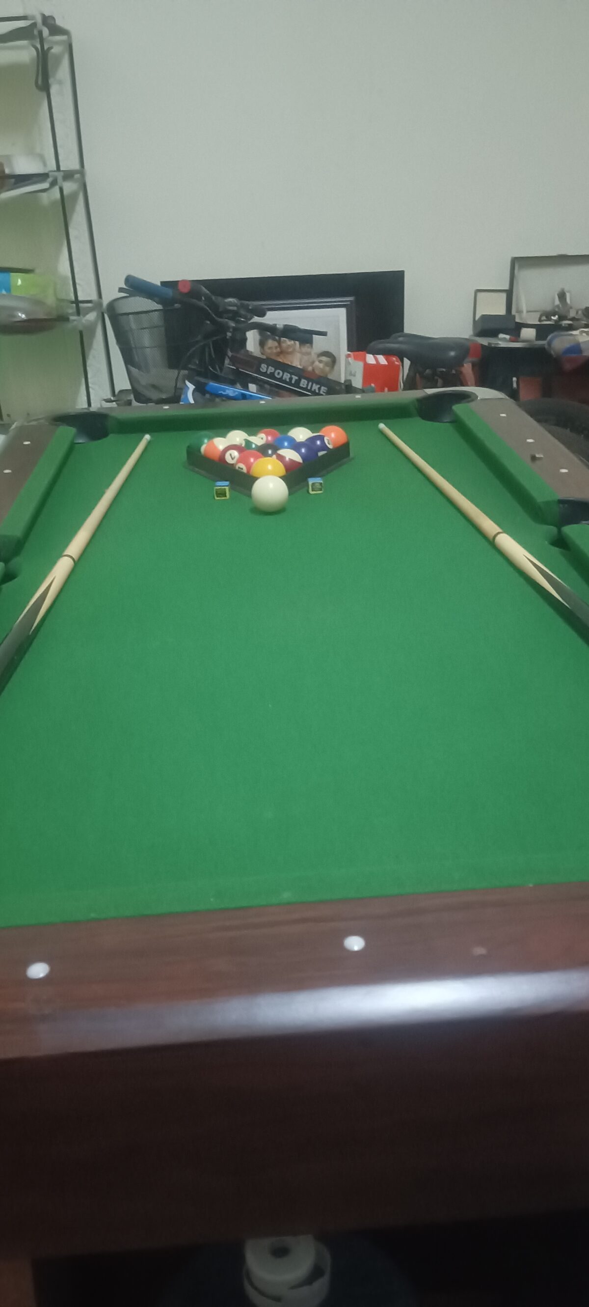 Enjoy hours of fun with this excellent condition 5’ Billiards Table! Perfect for adults and kids, it’s been lightly used and maintains its vibrant green felt and sturdy wood construction. Ideal for introducing your little ones to the classic game of billiards, this table offers safety and durability. Great for family game nights or as a unique gift for budding pool sharks. Don’t miss out on this fantastic addition to your playroom!