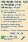 هل تبحث عن خدمات موثوقة في تصليح وصيانة المكيفات في دبي؟ نحن نوفر حلول تكييف الهواء السريعة والمهنية وبأسعار مناسبة للمنازل والمكاتب والأماكن التجارية. سواء كان المكيف بحاجة إلى تعبئة غاز، تنظيف عميق، تركيب جديد أو صيانة طارئة — ففريقنا من الفنيين ذوي الخبرة جاهز لخدمتك. رضا العملاء هو أولويتنا القصوى — ابقَ مرتاحًا وباردًا مع خدمات التكييف الموثوقة في جميع أنحاء دبي.