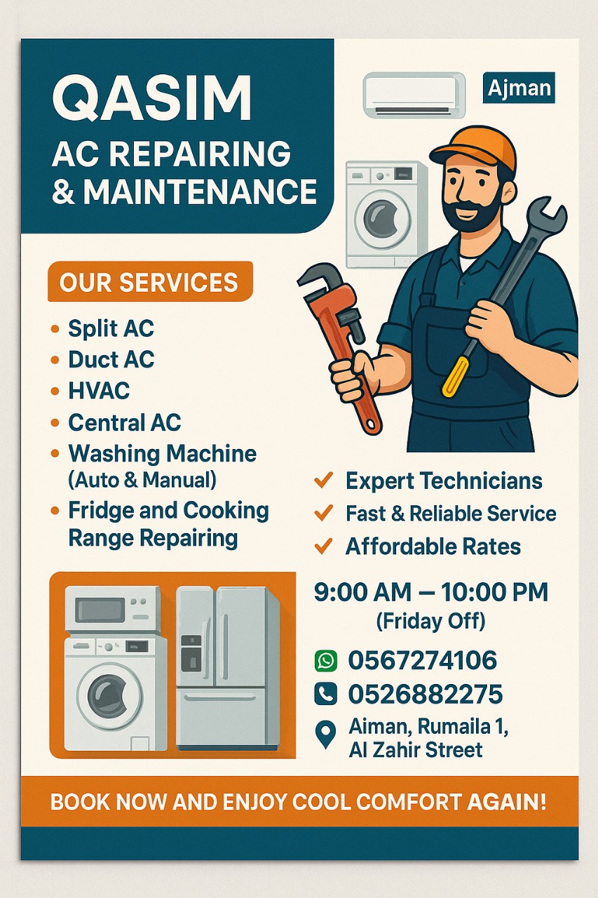 Affordable AC repair near me split AC window AC duct cleaning AED 0 Other Report problemProcessing your request, Please wait....Offensive ContentInvalid OfferSpamOther× Home Electronics Other Affordable AC repair near me split AC window AC duct cleaning Photo Gallery All photos (8) Affordable AC repair near me split AC window AC duct cleaning × Additional Info Contact WhatsApp Call Now Location Dubai City Ajman Country United Arab Emirates0567274106 AC repairing and maintenance split AC window AC HVAC duct AC package unit three phase or single phase We have professional team for this Contact us for perfect work Comments Dubai Ajman Share Ad qasimmalik7274@gmail.com Listing Owner Member Since: July 2, 2025 Contact Owner Contact Owner You must be logged in to inquire about this ad. × Search Ads All Categories 296 GTB 296 GTS 3 Star 4 star 400Z 5 star 612 Scaglietti 718 Spyder Accessories Accounting & Finance Accounting and Finance Activities Acura Acura MCX Acura RDX Acura RSX/Integra Advertising Advertising Agents Agriculture & Forestry Air Conditioners Alfa Romeo Alfa Romeo 145/146/147 Alfa Romeo 156/159 Alfa Romeo 166 Alfa Romeo 4C Alfa Romeo Brera Alfa Romeo Giulia Alfa Romeo GIULIETTA Alfa Romeo GTV/GT Alfa Romeo Mito Alfa Romeo Spider Alfa Romeo Stelvio Amplifiers Animal Skin Antiques Antiquities Apartment for Rent Apartment for Sale Apparel, Merchandise & Accessories Apple iPhone Apple iPod Aquariums & Fish/Reptile Supplies Armoires & Wardrobes Art Artists Aston Martin Aston Martin Cygnet Aston Martin DB11 Aston Martin DB7/DB9 Aston Martin DBS Aston Martin Lagonda Aston Martin One 77 Aston Martin Rapide Aston Martin Vanquish Aston Martin Vantage Aston Martin Virage Aston Martin Zagato Audi Audi A1 Audi A3 Audi A4 Audi A5 Audi A6 Audi A7 Audi A8 Audi Other Audi Q2 Audi Q3 Audi Q5 Audi Q7 Audi Q8 Audi R8 Audi S3/RS3 Audi S4/RS4 Audi S5 / RS5 Audi S6 / RS6 Audi S7 / RS7 Audi S8 Audi TT Audio books Auto Accessories Auto garage and service centers Auto Parts Automotive Automotive Tools Baby Gear Baby Items Baby Toys Babysitting & Nannies Backpacks Carriers Bags Bags Bags & Cases BAIC BAIC A1 BAIC A113 BAIC A115 BAIC A523 Banking, Settlements & Insurance Banking, Settlements & Insurance Bassinets, Cradles & Rockers Batteries Bed Space Bedding & Bed Accessories Beds/Bed Sets Bel Air Belts Bentley Bentley Arnage Bentley Azure Bentley Bentayga Bentley Brooklands Bentley Continental Bentley Continental GT Bentley Flying Spur Bentley Mulsanne Billiards Blu ray BMW BMW 1-Series BMW 2-Series BMW 3-Series BMW 4-Series BMW 5-Series BMW 6-Series BMW 7-Series BMW 8-Series BMW ALPINA BMW I3 BMW i8 BMW M-Coupe BMW M-Roadster BMW M1 BMW M2 BMW M3 BMW M4 BMW M5 BMW M6 BMW M8 BMW X1 BMW X2 BMW X3 BMW X4 BMW X5 BMW X6 BMW X7 BMW Z3 BMW Z4 BMW Z8 BMWOther Boat Parts Boats Book Accessories Bookcases Books Borgward Borgward BX5 Borgward BX7 Boxes Brakes Brilliance Brilliance H530 Brilliance V5 Bufori Bufori others Bugatti Bugatti Chiron Bugatti Super Sport Bugatti Veyron Bugatti Veyron 16.4 Buick Buick Others Building Materials & Supplies Bus and Van Rental Buses Business Business & Industrial Business and industries Business Directory Business Software Businesses for Sale BYD BYD F3 Cab-Chassis Cabinets & Cupboards Cable TV Boxes Cables & Adapters Cadillac Cadillac ATS Cadillac CT5 Cadillac CT6 Cadillac CTS-V Cadillac CTS/Catera Cadillac DTS/De Ville Cadillac Escalade Cadillac Fleetwood Cadillac Other Cadillac SRX Cadillac STS/Seville Cadillac XLR Cadillac XT4 Cadillac XT5 Cadillac XTR/Eldorado Cadillac XTS Cameras & Imaging Cameras & Imaging Camping & Hiking Car Audio Systems Car Electronics Car/4×4 Parts Carry Cases & Sleeves Casettes Caterham Caterham Seven 270 Caterham Seven 360 CD Player CDs Ceiling Fans Changan Changan CS35 Changan CS75 Changan CS95 Changan Eado Chargers & Cables Chefs, Cooks & Kitchen Chery Chery Arrizo 5 Chery Arrizo 7 Chery E5 Chery Tiggo Chery Tiggo 3 Chery Tiggo 7 Chevelle Chevrolet Chevrolet Astro Chevrolet Avalanche Chevrolet Aveo Chevrolet Blazer Chevrolet Bolt Chevrolet Camaro Chevrolet Caprice Chevrolet Captiva Chevrolet Cavalier Chevrolet Colorado Chevrolet Corvette Chevrolet Cruze Chevrolet Epica Chevrolet Equinox Chevrolet Explorer Chevrolet Express Chevrolet HHR Chevrolet Impala Chevrolet Lumina Chevrolet Malibu Chevrolet Optra Chevrolet Others Chevrolet Pickup Chevrolet Silverado Chevrolet Sonic Chevrolet Spark Chevrolet SSR Chevrolet Suburban Chevrolet Tahoe Chevrolet Trailblazer Chevrolet Traverse Chevrolet Trax Chevrolet Uplander Childcare Children clothings Children uniforms Children’s Bikes Children’s Books children’s Fiction Children’s Watches Childrens Furniture Chrysler Chrysler 200/200C EV Chrysler 300M/300C Chrysler Crossfire Chrysler Others Chrysler Pacifica Chrysler Prowler Chrysler PT Cruiser Chrysler Sebring Chrysler Voyager Caravan Citroen Citroen Berlingo Citroen C3 Citroen C5 Citroen DS 3 Citroen DS 4 Citroen DS5 Citroen Other CLA Classes Cleaning Equip. & Supplies Clothing & Accessories Clothing & Accessories Clothing materials Clubs CMC CMC Other CMC Veryca CMC Z7 Coach Coaster Coffee & Espresso Appliances Collectibles Commanche Commercial for Rent Commercial for Rent wanted Commercial for Sale Commercial Kitchen & Supplies Commercial Printing and Copy Machines Communities Computer Components Computer Components Computers Computers & Networking Computers & Networking Computing & IT Computing & IT Construction Construction Construction Continental Flying Spur Corsair Costumes & Uniforms CR-Z Cranes Cribs Cruiser/Chopper CT4 Cufflinks Curtains & Blinds Curtains & Blinds Curtains & Drapes CX-30 Cycling Cycling Equipment & Accessories Daewoo Daihatsu Daihatsu Charade Daihatsu Gran Max Daihatsu Materia Daihatsu Rocky Daihatsu Sirion Daihatsu Terios Data Entry & Junior Admin Data Entry & Junior Admin Datsun Datsun 280Z Decorations Decorations Dentist, Dental Nurse, Hygienist Dentist, Dental Nurse, Hygienist & Sales Design Design & Creative Desig