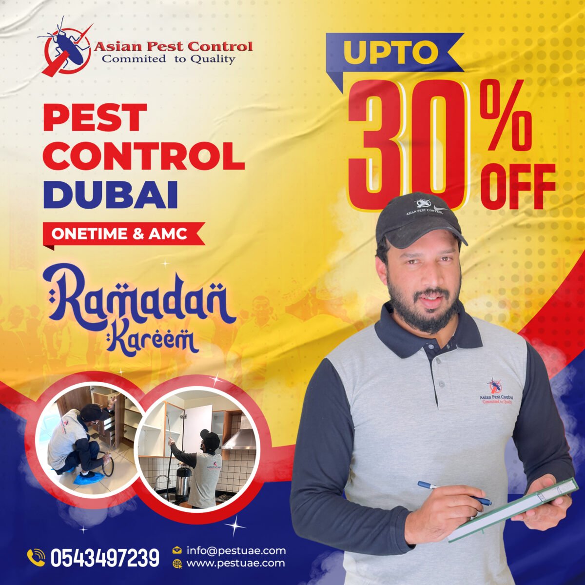 Looking for affordable and effective pest control in Dubai? Get up to 30% RAMADAN DISCOUNT on all pest treatments today! Our expert team provides safe, reliable, and eco-friendly solutions to eliminate Pests.