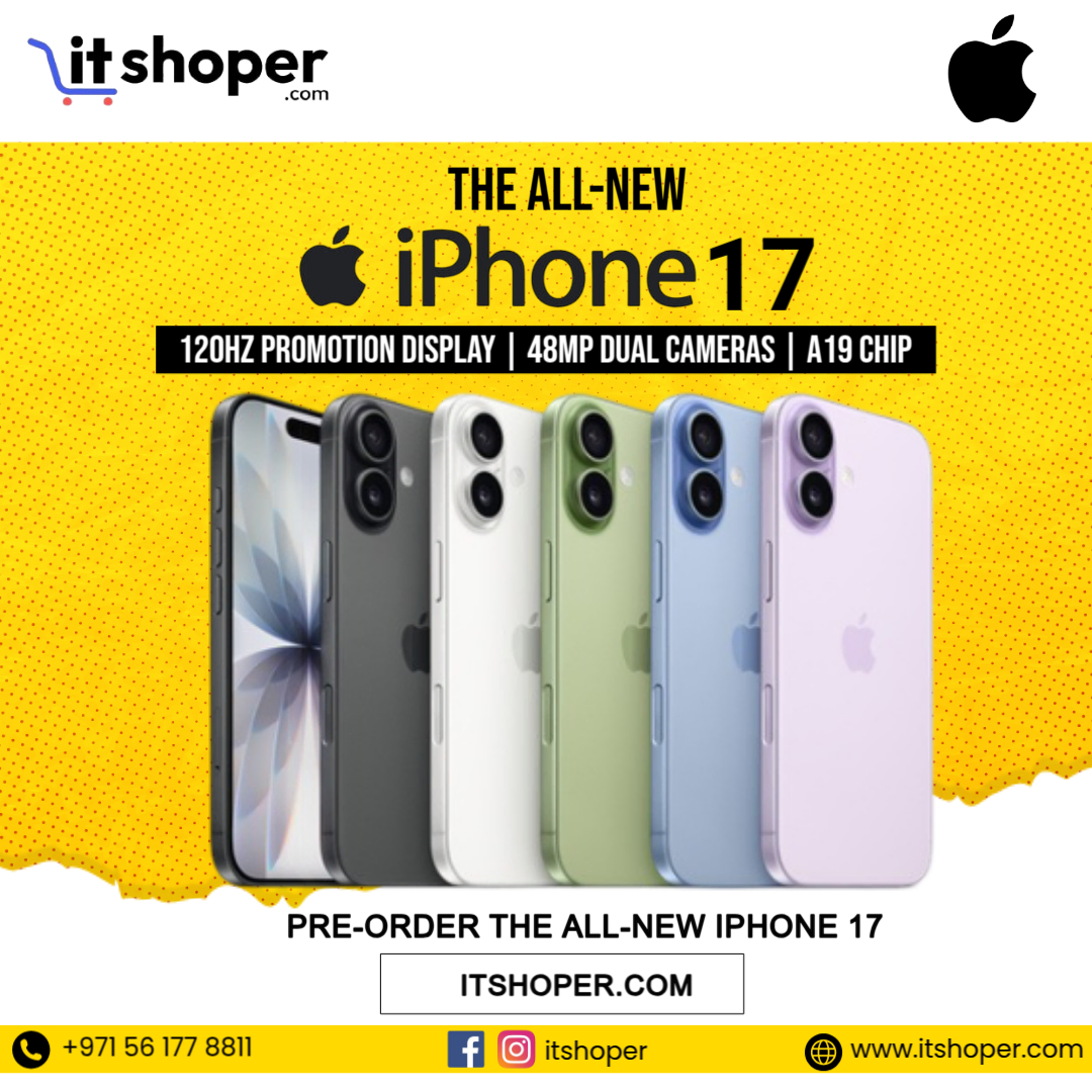 Looking for the newest iPhone? The iPhone 17 is now available at ITshoper.com, your trusted electronics online store in UAE. Experience lightning-fast performance with the latest A18 Bionic chip, an advanced 120 Hz ProMotion display, and a powerful all-day battery. Capture professional-grade photos with upgraded AI-powered cameras and enjoy next-level iOS features.