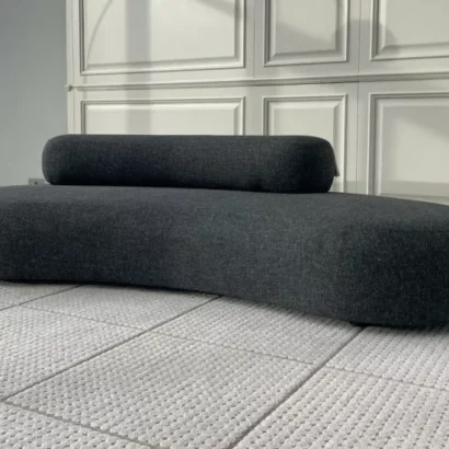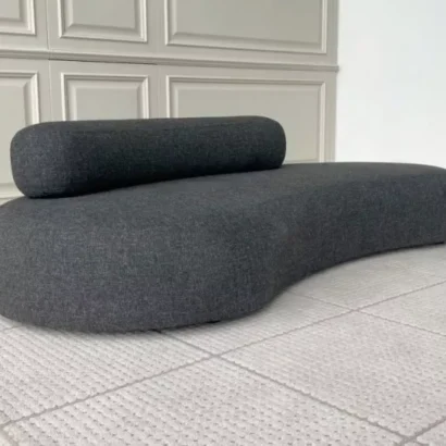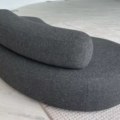 Make a bold statement in your living space with this Contemporary Dark Grey Curved Sofa from Ansary Furniture. Featuring a sleek, organic shape and minimalist design, this sofa combines artful aesthetics with exceptional comfort. Upholstered in a soft, durable dark grey fabric, it adds a sophisticated touch to any modern interior. The curved backrest provides excellent lumbar support, making it ideal for lounging or entertaining guests. Its low profile and unique silhouette bring a fresh, innovative vibe to your living room or lounge area