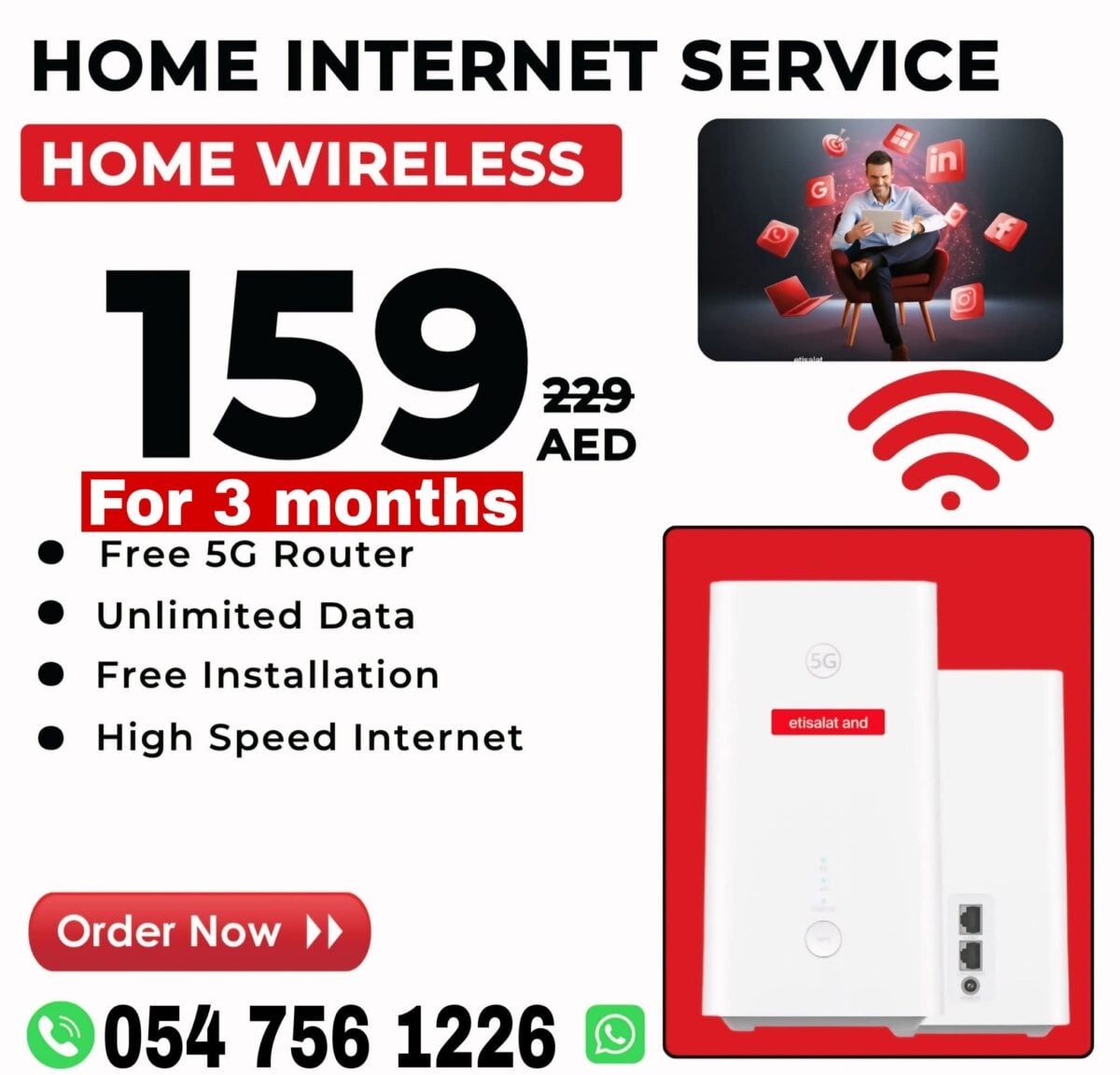 ETISALAT HOME INTERNET AED 159 Routers Report problemProcessing your request, Please wait....Offensive ContentInvalid OfferSpamOther× Home Free Classifieds Computers & Networking Networking & Communication Routers ETISALAT HOME INTERNET ETISALAT HOME INTERNET November 5, 2025 AED 159 Verified & Active Photo Gallery ETISALAT HOME INTERNET × Additional Info Contact WhatsApp Call Now City Dubai Country United Arab Emirates Age Brand New Accessories Brand D-Link Usage Still in original packaging Condition Perfect inside and out Warranty Yeshttps://wa.me/9710547561226 Call or WhatsApp #dubai #ajman #sharjah #rasalkhaimah #fujairah #alain #ummalquwain #eLife #etisalatUAE #etisalatwifi #etisalathomeinternetwireless #Etisalat_Internet_Offers #etisalatUAE Comments eandetisalat.ae Listing Owner Member Since: October 7, 2025 Etisalat home wifi internet connection all over UAE call or WhatsApp: 054 756 1226 Contact Owner Contact Owner You must be logged in to inquire about this ad. × Share Ad Search Ads All Categories Communities Electronics Free Classifieds Hotels Jobs Motors Others Properties for Rent Properties for sale Vehicles Rental Search Ad Categories Communities 394 Electronics 135 Free Classifieds 1137 Hotels 8 Jobs 88 Motors 47 Properties for Rent 121 Properties for sale 29 Vehicles Rental 45 Share Ad Dubai Similar in Free Classifieds View All AED 500 Chef Knife Dubai AED 13 Ramas Cargo – Door-to-Door Cargo & Moving Services from Dubai AED 0 In the Current Situation – Online Laundry Service Across Abu Dhabi AED 0 Al Mamzar Tower AED 0 Post-Blast Glass Repair Services – Fast & Reliable Glass Replacement AED Contact Best Logistics Company in Dubai AED 2,000 NEBOSH PSM: Master Process Safety Management AED Contact DAR AL HAY دار الحي للخياطة الرجالية – Best Kandura Shop in Sharjah AED 0 Premium Canvas Tarpaulin – Tough, Durable & Weather‑Resistant AED Contact getvirtualejaridubai