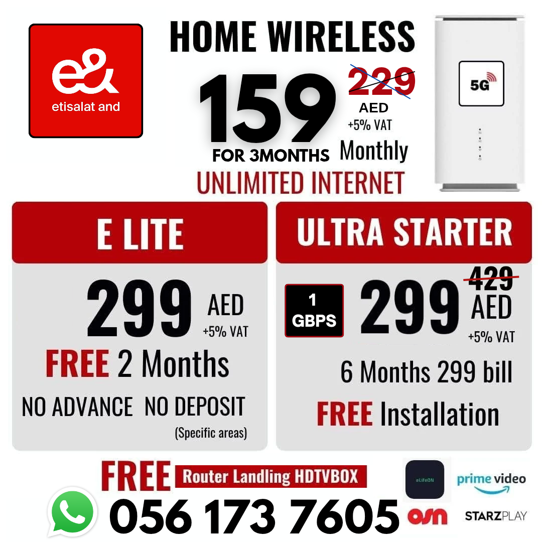 home wireless etisalat is available in 159 for 3months discount is available