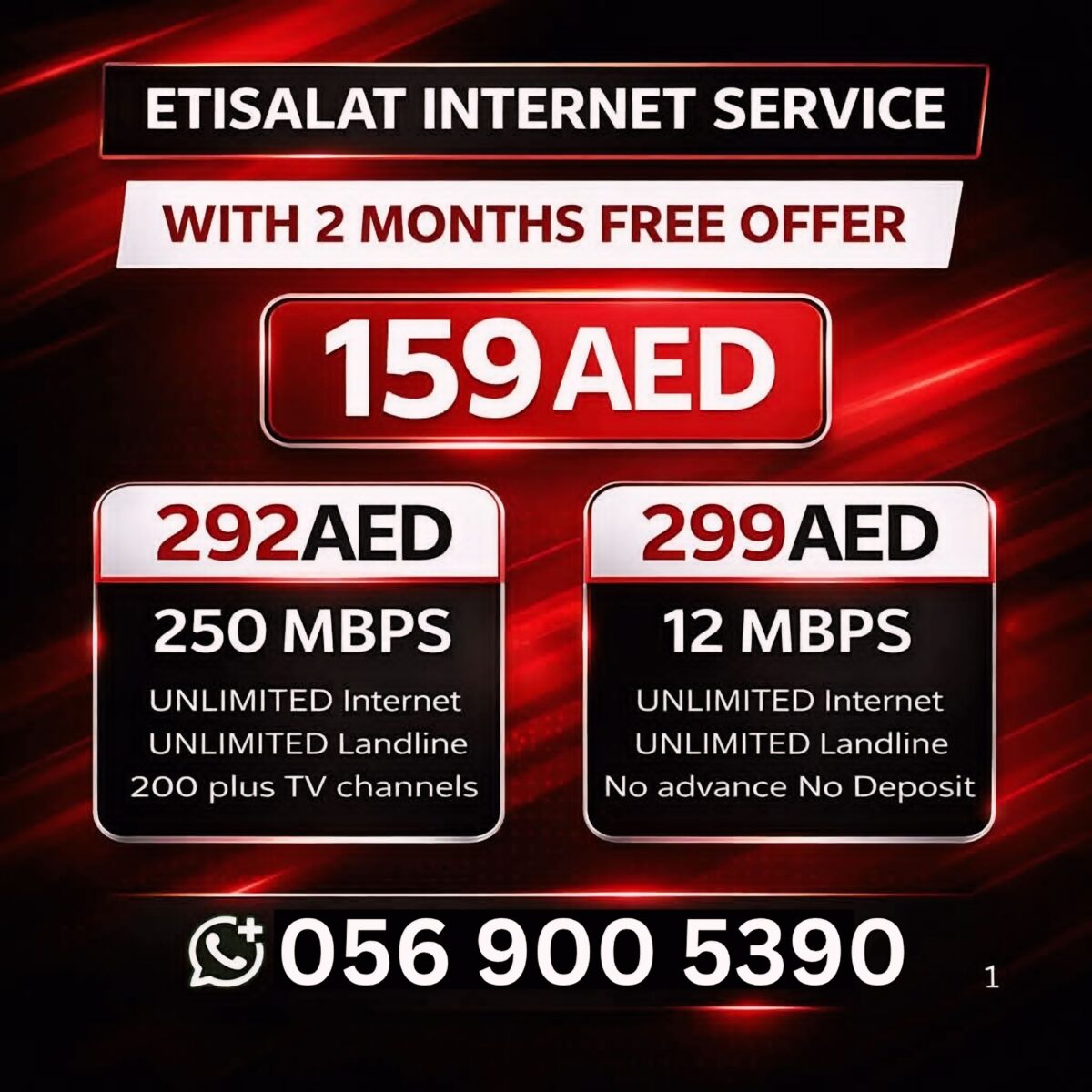 Etisalat Home Wifi 5G AED 159 Other Report problemProcessing your request, Please wait....Offensive ContentInvalid OfferSpamOther× Home Free Classifieds Computers & Networking Networking & Communication Other Etisalat Home Wifi 5G Etisalat Home Wifi 5G February 9, 2026 AED 159 Verified & Active Photo Gallery Etisalat Home Wifi 5G × Additional Info Contact WhatsApp Call Now Location United Arab Emirates City Dubai Country United Arab Emirates Age Brand New Accessories Brand Other Usage Still in original packaging Condition Perfect inside and out Warranty Yes*229AED now 159AED Advance Promotion* For More information contact me on Calling number = 056 900 5390 WhatsApp number press the link https://wa.me/971569005390 Etisalat internet service Wi-Fi Etisalat home internet service Wi-Fi Connections #sharjah #dubai #ajman #abudhabi #fujairah #rasalkhaimah #alain #highlights @highlight #Etisalat #home #internet #service #etisalat #home #wireless #Internet #service #Wifi All over UAE 🇦🇪 Comments ETISALAT Listing Owner Member Since: April 2, 2025 Etisalat Home Wifi Connection Sievers in all UAE NO ADVANCE NO ADVANCE 0569005390 CALL OR WHATSAPP Contact Owner Contact Owner You must be logged in to inquire about this ad. × Share Ad Search Ads All Categories Communities Electronics Free Classifieds Hotels Jobs Motors Others Properties for Rent Properties for sale Vehicles Rental Search Ad Categories Communities 443 Electronics 170 Free Classifieds 1187 Hotels 8 Jobs 95 Motors 60 Properties for Rent 122 Properties for sale 42 Vehicles Rental 47 Share Ad United Arab Emirates Dubai Similar in Free Classifieds View All AED Contact Bespoke Joinery Dubai UAE AED 79 Desert Birds Tourism LLC AED Contact Dubai Joinery AED Contact Dubai Commercial Joinery Services AED 36,000 General Trading License For SaLe AED Contact Modern Home Joinery AED 159 159 Etisalat Home Wireless New Offer 0569005390 Call or Whatsapp AED 159 DU HOME WIFI INTERNET CONNECTION AED 159 Etisalat home WiFi internet connection AED 360 Fast, Reliable & Hassle-Free UAE Visa Services.