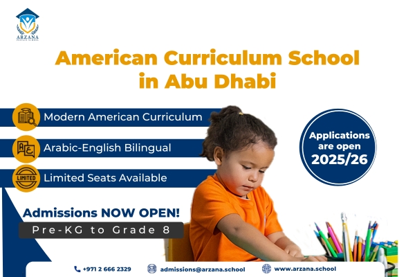 Discover Arzana Private School, a thriving American curriculum school in Abu Dhabi (Pre-KG to Grade 8) that inspires confidence, creativity, and academic excellence. Strategically located in Bani Yas East, we offer a bilingual and inclusive learning environment infused with STEM, arts, and Emirati culture. As an ADEK-licensed American school in Abu Dhabi, Arzana nurtures global citizens through personalized attention, a safe campus, and cutting-edge facilities. Join us—where innovation meets heritage and young learners are empowered to thrive and lead with purpose.