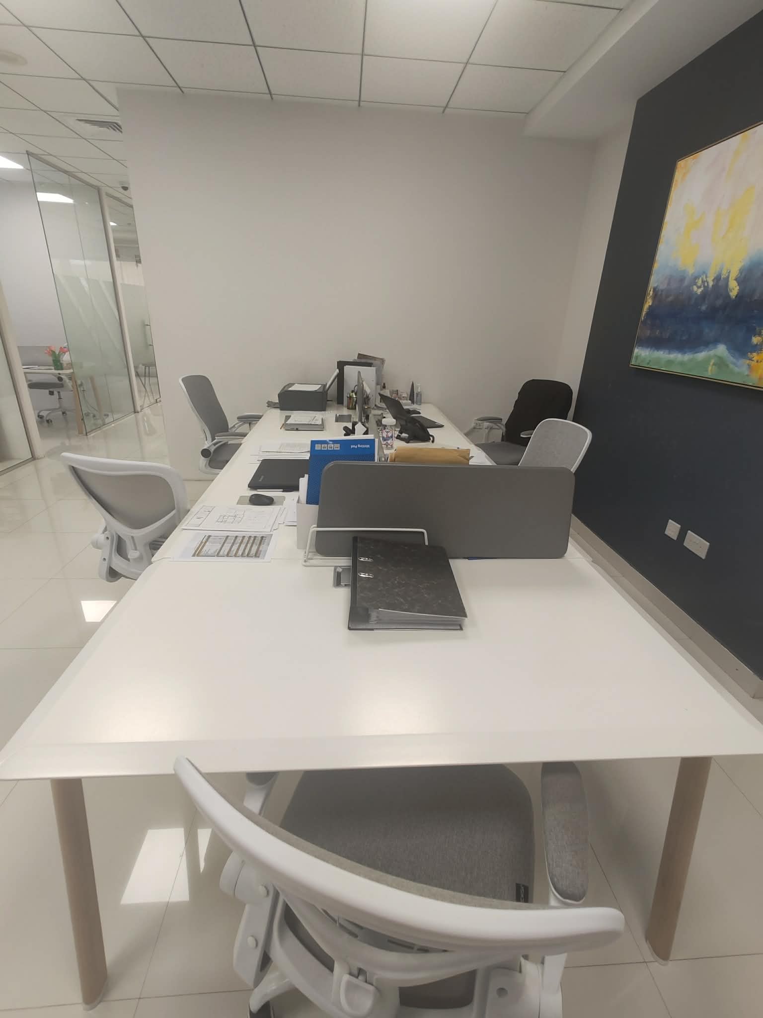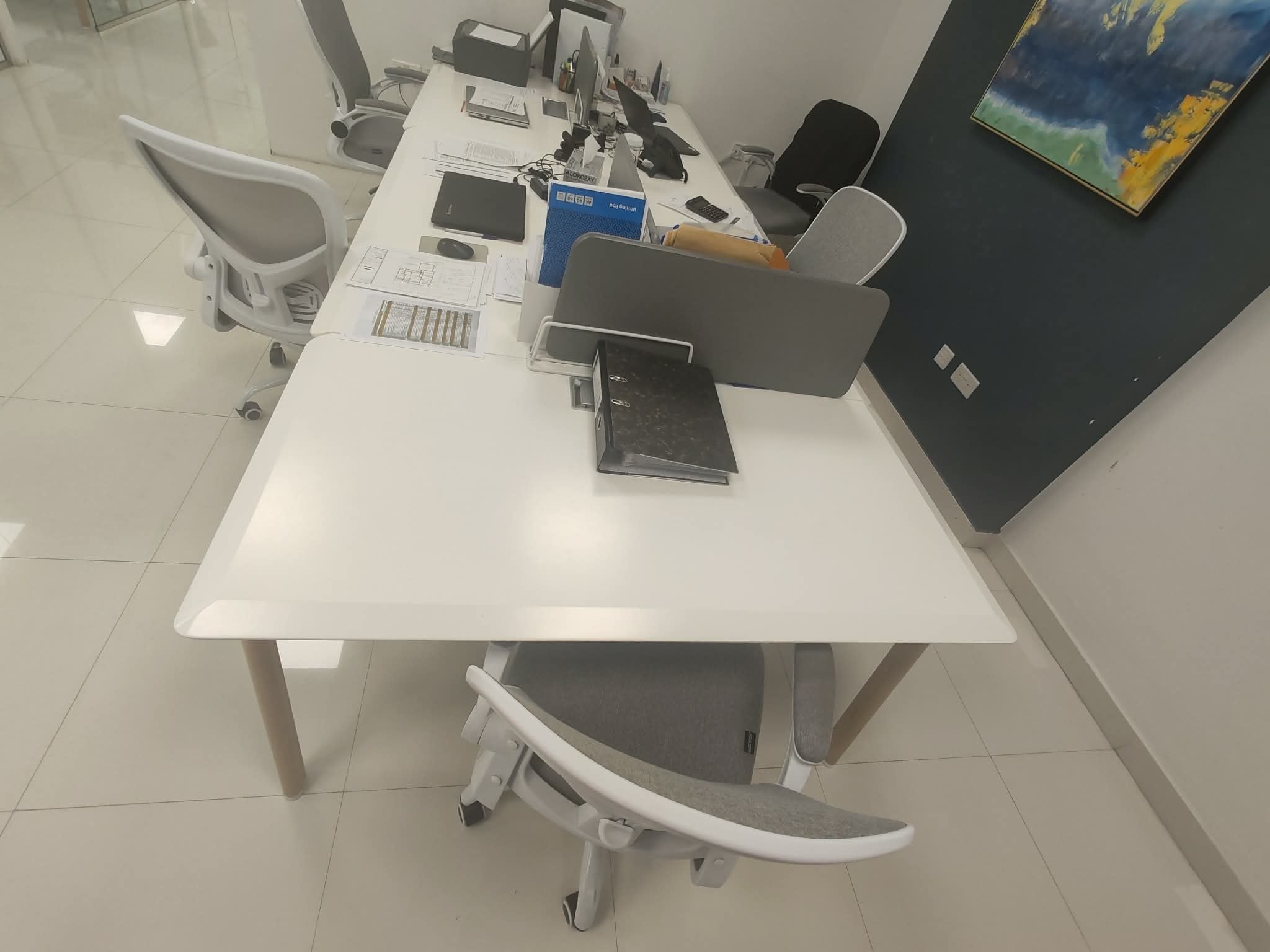 I’m selling a white office workstation table that I’ve used in my workspace. It’s 1–2 years old and has only seen normal office use, so it’s in excellent condition. The desk has a clean white top, sturdy legs and does not include any built-in drawers. It works well for an open-plan setup or as a shared office desk — see photos for the exact layout and divider details.0582130534