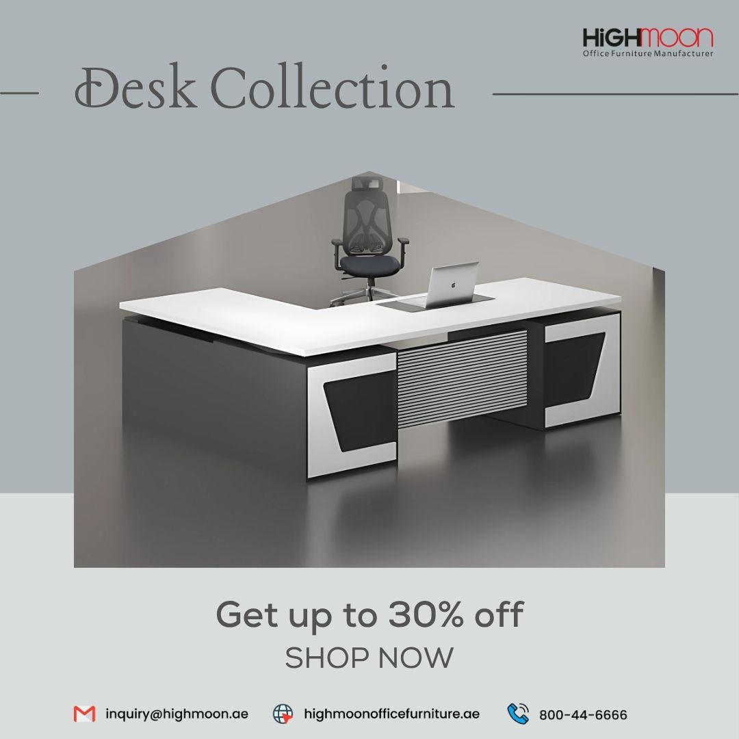 Style meets smart functional capabilities with Highmoon’s Adjustable Executive Desk collection, available at u to 30 percent off in the UAE., on sale whether you are in Dubai, Abu Dhabi, Sharjah, Ajman, Fujairah, Ras Al Khaimah, and Umm Al Quwain. When it comes to height-adjustable desks, Highmoon offers something for professionals who want both comfort and style.