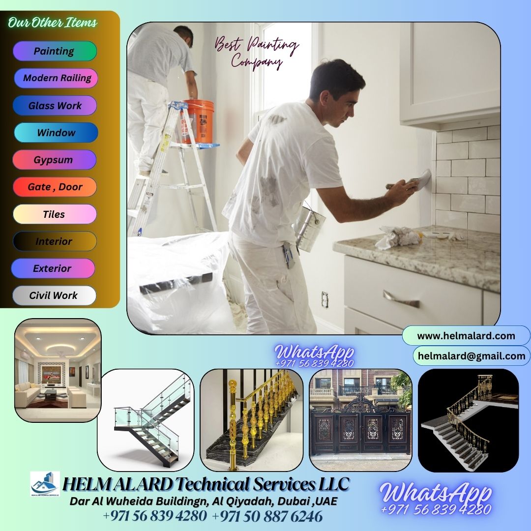 Dear Sir- Madam, Good day, I will offer you best maintenance Services. We Helm alard technical services LLC Company is one of the fastest growing companies in Ajman Dubai Sharjah RAK providing home Maintenance services in United Arab Emirates . Helm alard technical services LLC Services , is a firm specialized in All types of Interior Design & Exterior Modern epoxy floor painting and Home Painting work and provide facility maintenance services in different business sectors like Commercial & Residential buildings, Warehouse,Apartments, Hospitals, Hotels, Labor Camps ,Shopping Malls etc. call +971568394280