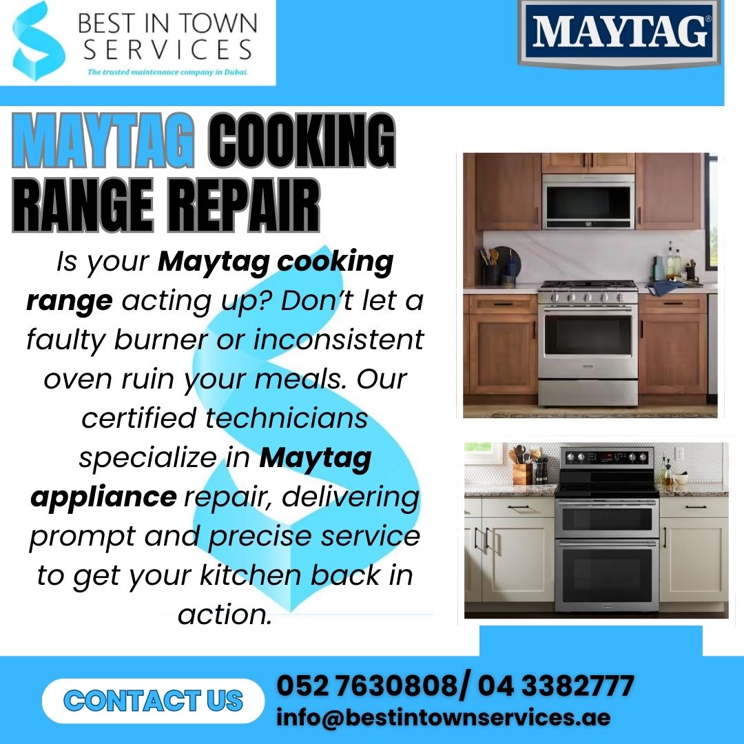 Is your Maytag cooking range not heating, uneven cooking, or showing error codes? Don’t let meal times get ruined – Best in Town Services is here to bring your kitchen back to life! 🍳