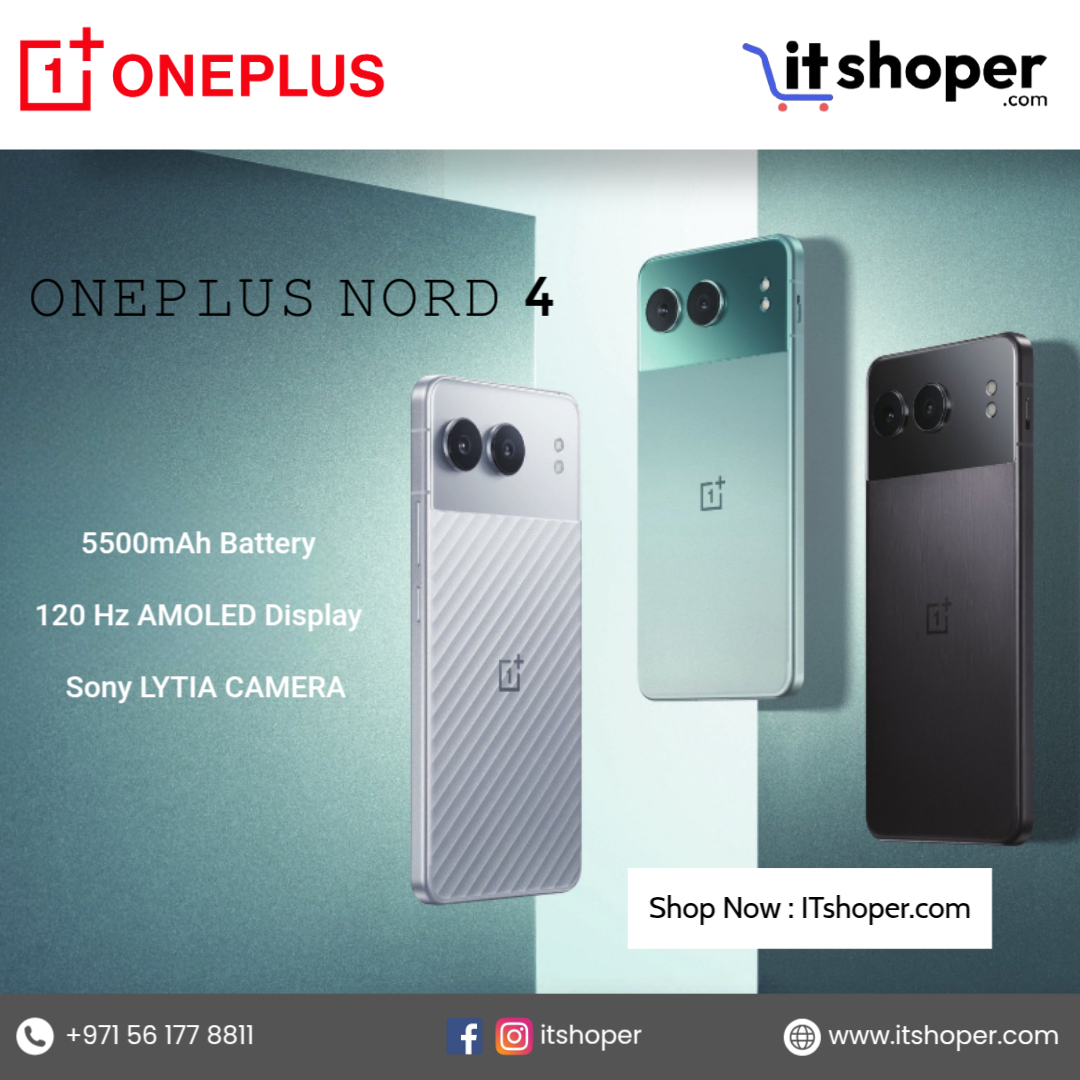 Upgrade your tech with the OnePlus Nord 4 featuring a 5500mAh battery, 120Hz AMOLED display, and Sony Lytia camera. Shop now at ITshoper.com, the best IT & electronics online store, for reliable products, great deals, and fast delivery across UAE.