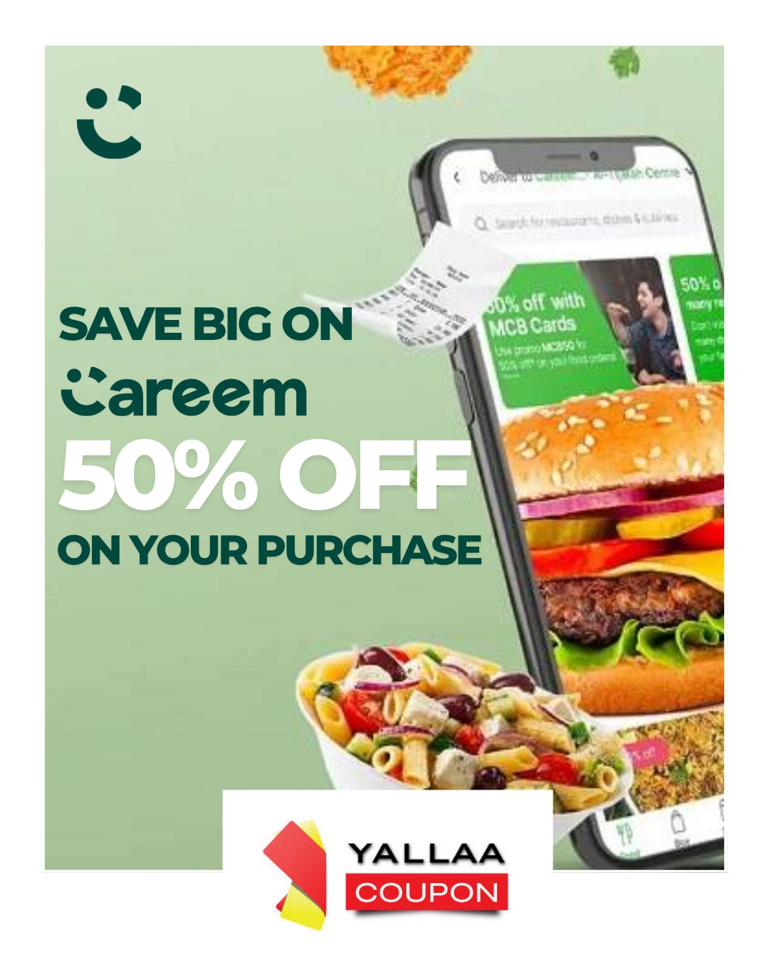 Enjoy mouth-watering meals at half the price! Use Yallaa Coupon to get 50% OFF on your next Careem food order. Whether you’re craving a juicy burger or a fresh pasta bowl, this deal has you covered. No more paying full price—start saving today with just a click!