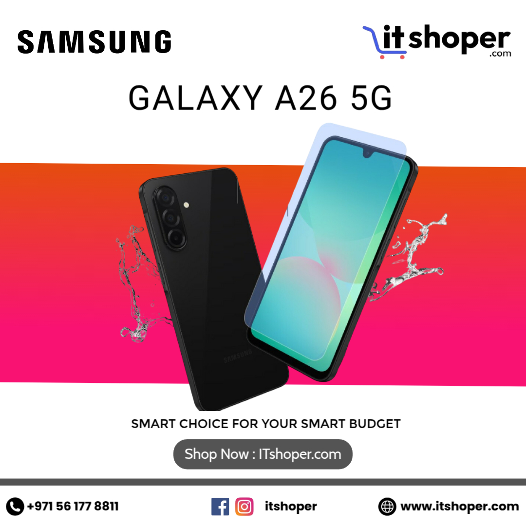 Looking for reliable electronics stores in UAE? ITshoper.com brings you the latest gadgets including the Samsung Galaxy A26 5G for AED 845. Enjoy ultra-fast 5G connectivity, sleek design, a powerful camera, and long-lasting battery. Shop online with ease and get the best deals on top electronics.
