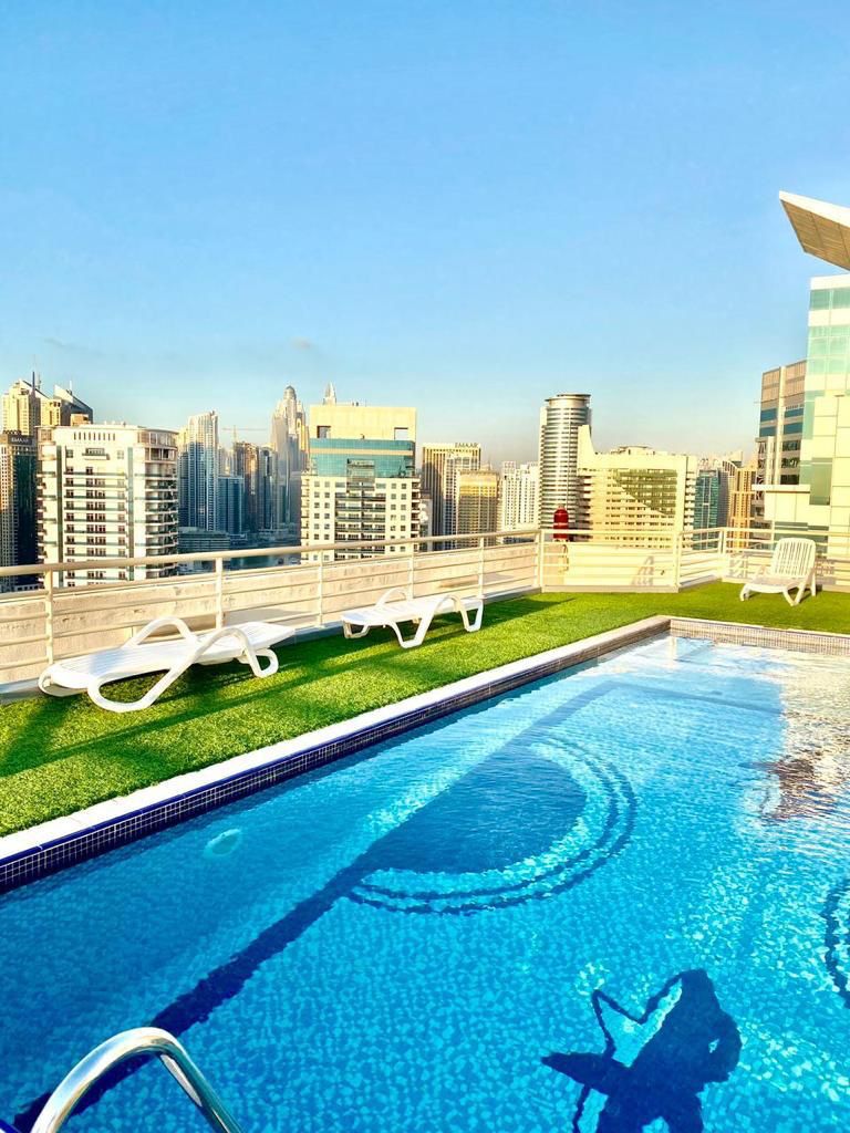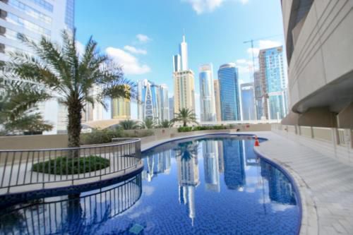 Features Balcony, Built in Kitchen Appliances, Central A/C & Heating, Covered Parking, Pets Allowed, Security, Shared Gym, Shared Pool, View of Landmark