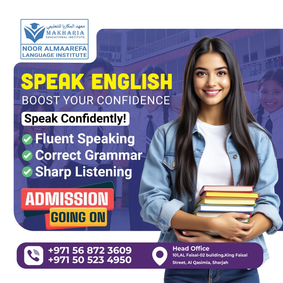 Looking for top English classes in Sharjah? Makharia Institute offers expert English tuition for all levels – beginners to advanced. Improve spoken English, grammar, vocabulary, and writing with personalized coaching from experienced tutors.