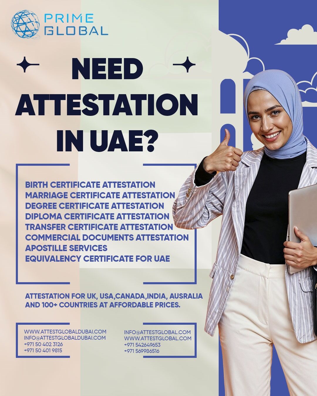 Prime Global Attestation Services offers fast and reliable certificate attestation services across the UAE. We specialize in attesting educational, personal, and commercial documents to ensure they are legally recognized by UAE authorities. With over 8 years of experience, our team handles the entire process, including notarization, embassy, and MOFA attestation. Whether you’re applying for a job, visa, or business setup, Prime Global Attestation Services ensures a smooth and hassle-free experience from start to finish.