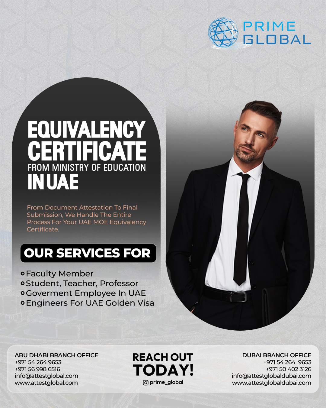 At Prime Global Attestation, we provide complete support for obtaining your UAE equivalency certificate, including document preparation, attestation, and MoE submission. Our experienced team ensures a smooth, fast, and hassle-free process, helping you meet official requirements with confidence and ease.